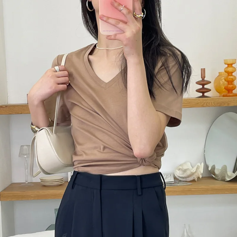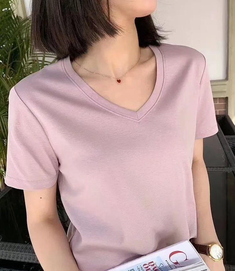 High Quality Mulberry Silk Cotton T-shirts Women Solid O Neck Top Summer Short Sleeve Tees Basic Soft T-Shirts Loose Style Korea