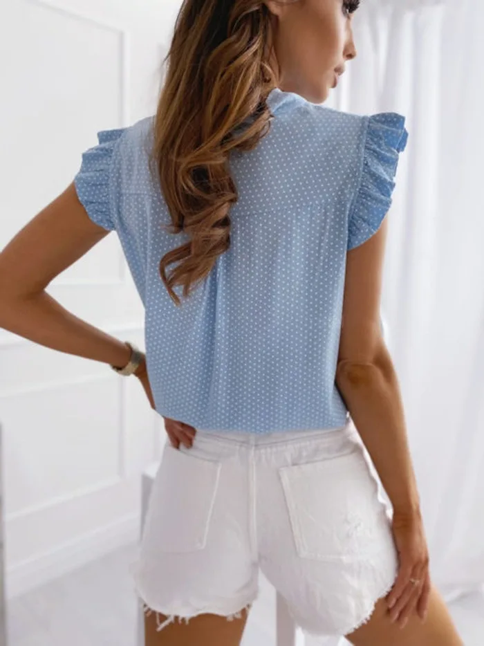 Summer Chiffon Lace Up Bow Tie Blouse For Women Polka dot Fly Sleeve Shirt Elegant Ruffles Loose Tops Elegant Female Clothes